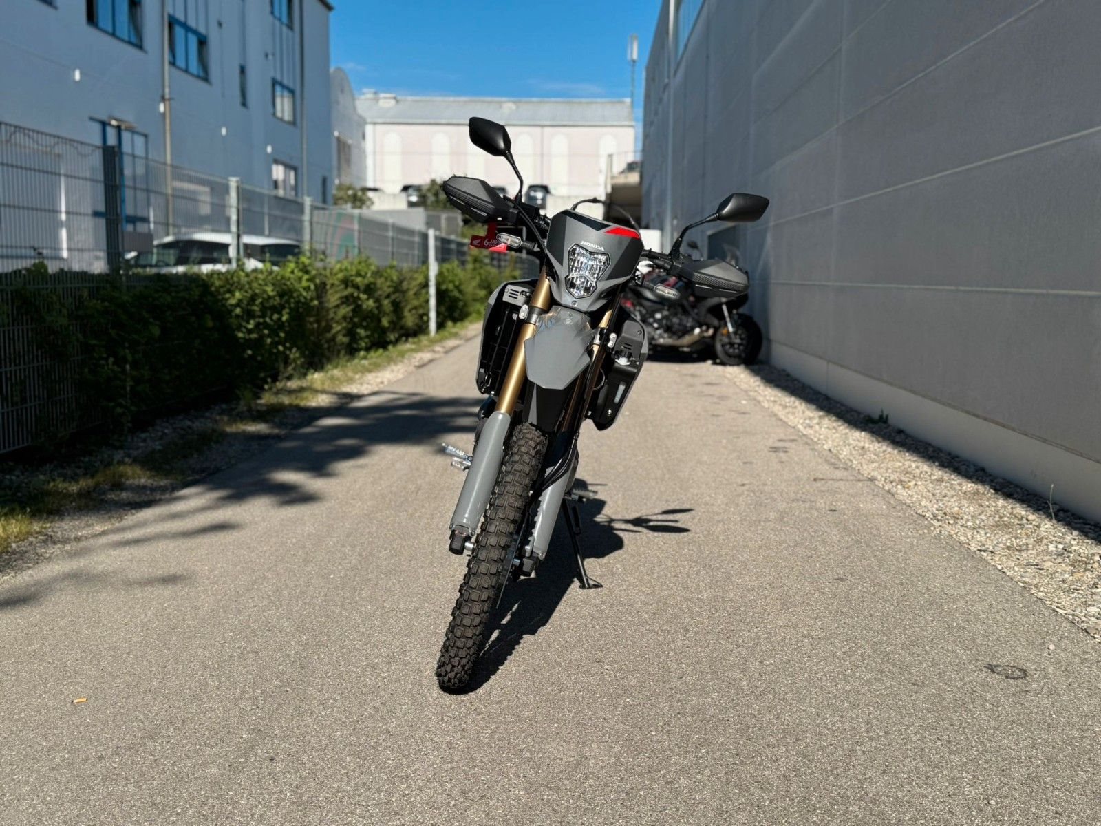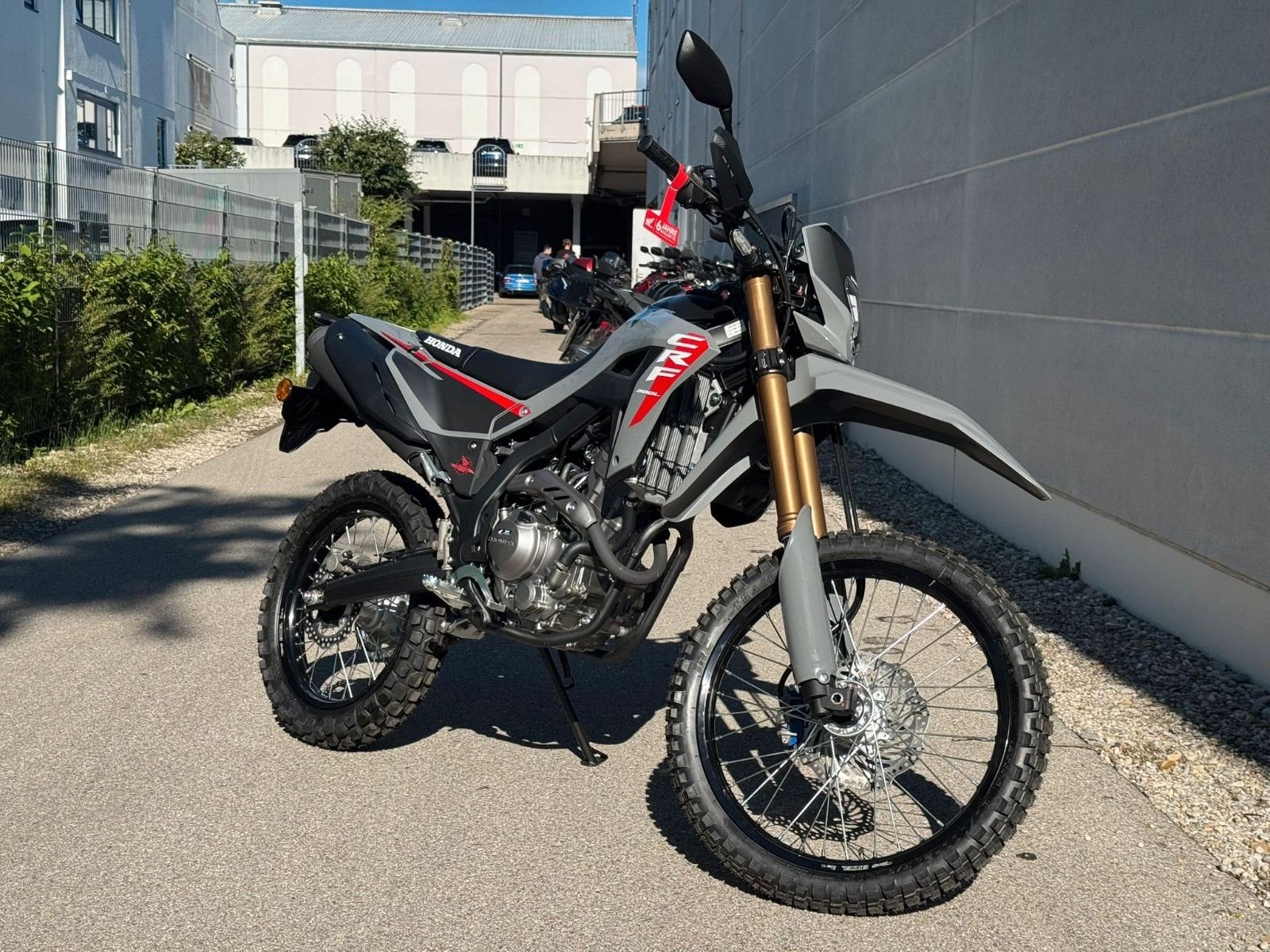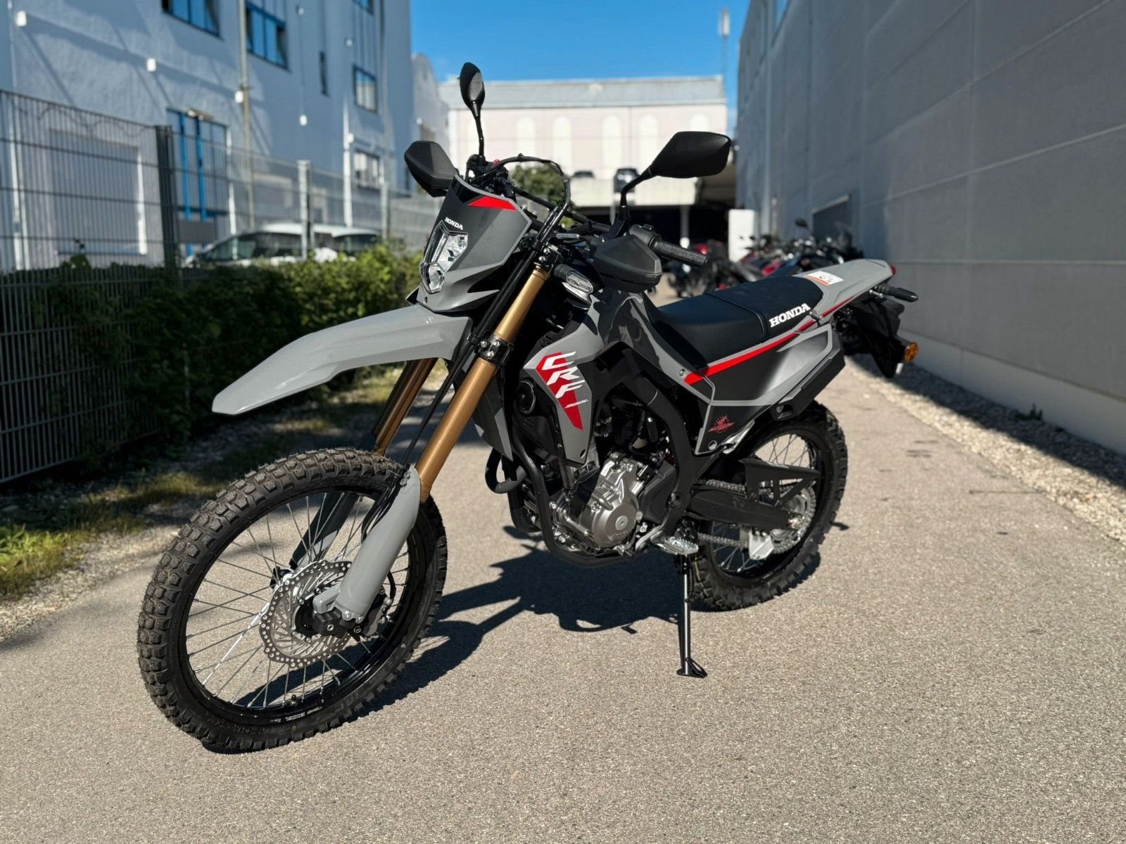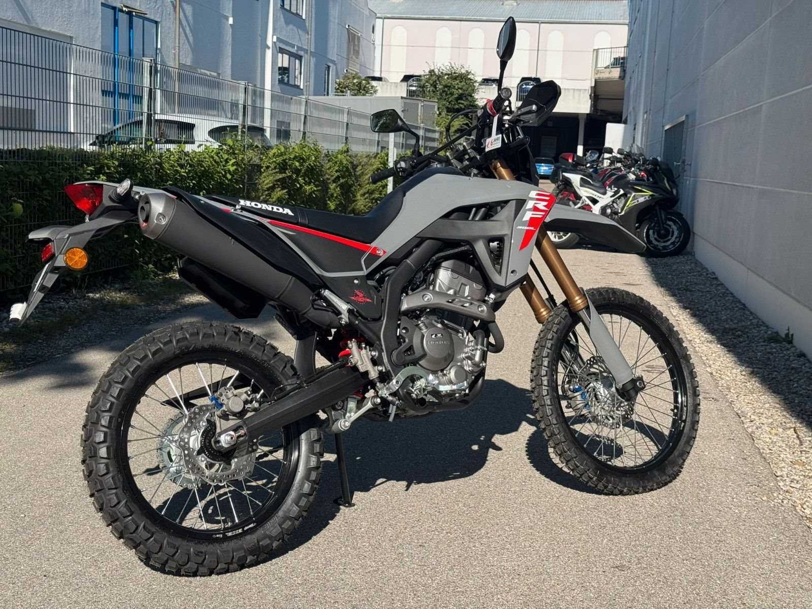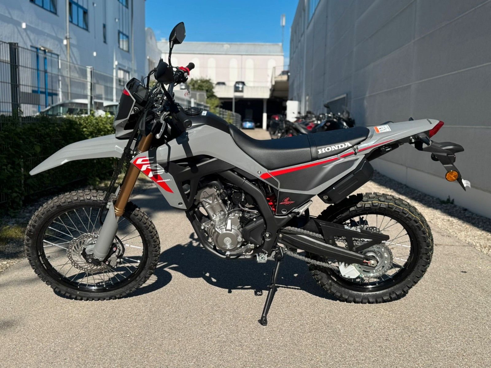 Diese nagelneue Honda CRF300L in der attraktiven Farbe "Grau" steht bei uns in der Motorrad Box Dachau für dich bereit. Komm vorbei und lass dich von diesem vielseitigen und faszinierenden Motorrad überzeugen. Dein Weg ins Abenteuer beginnt hier.